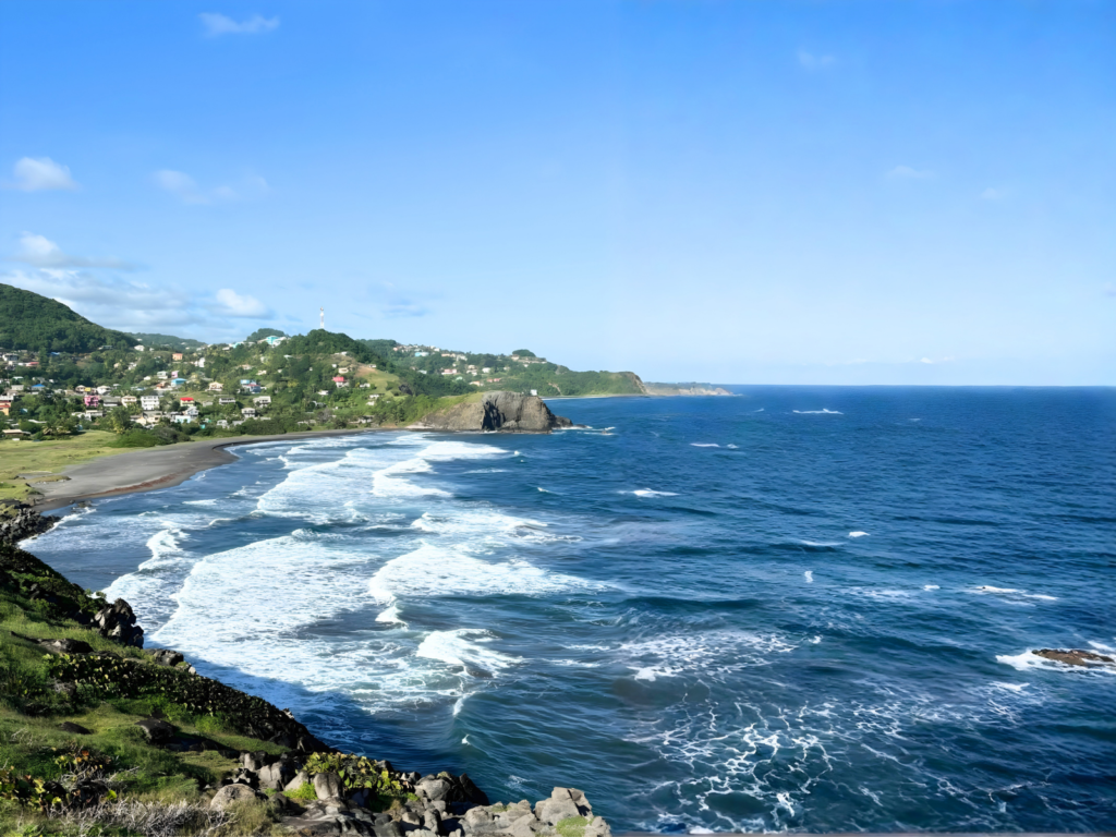 Today, the bay offers breathtaking views where the dramatic landscape meets the open sea, creating a stunning contrast between land, ocean, and volcanic sand.