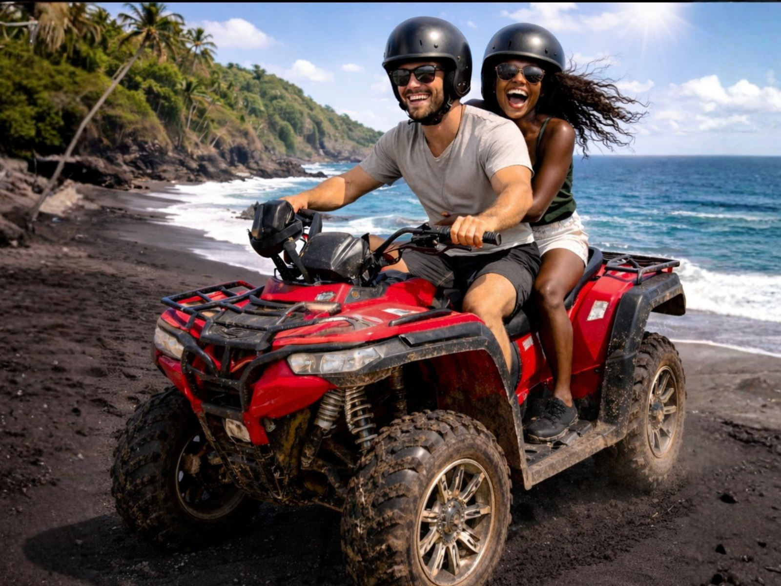 Experience 90 minutes of thrilling ATV adventure leading to one of St. Vincent and the Grenadines’ most iconic natural wonders, its idyllic black sand beaches. Formed from volcanic lava and minerals, the shimmering sand glistens beneath the afternoon sun, creating a breathtaking and truly unforgettable stop along your ride.